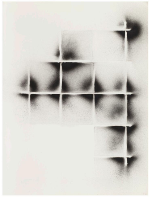 In 1966, New York-based artist Gerald Hayes experimented with the unusual technique of spray paint. He created abstract compositions using discarded commercial packaging and vaporized pigment.