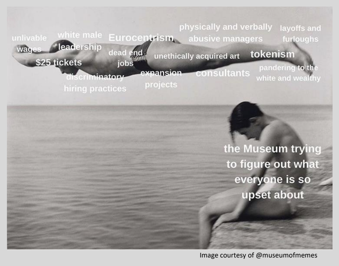 Art museums are at a point of inflection under pressures from the global pandemic, economic crisis, and renewed calls for social justice. This course examines the unique challenges and opportunities museums face in these present times to ensure a more equitable future. While providing an overview of various museum operations, the course invites students to critically engage in reimagining our cultural organizations to function better and serve more widely. Topics include mission and ethics, governance and transparency, collections and hierarchies, exhibitions and authority, audiencedevelopment and programming, community and digital strategies, finances and budgets. The course’s goal is not only to prepare students for the museum field today but equip them to reimagine our cultural institutions of tomorrow.