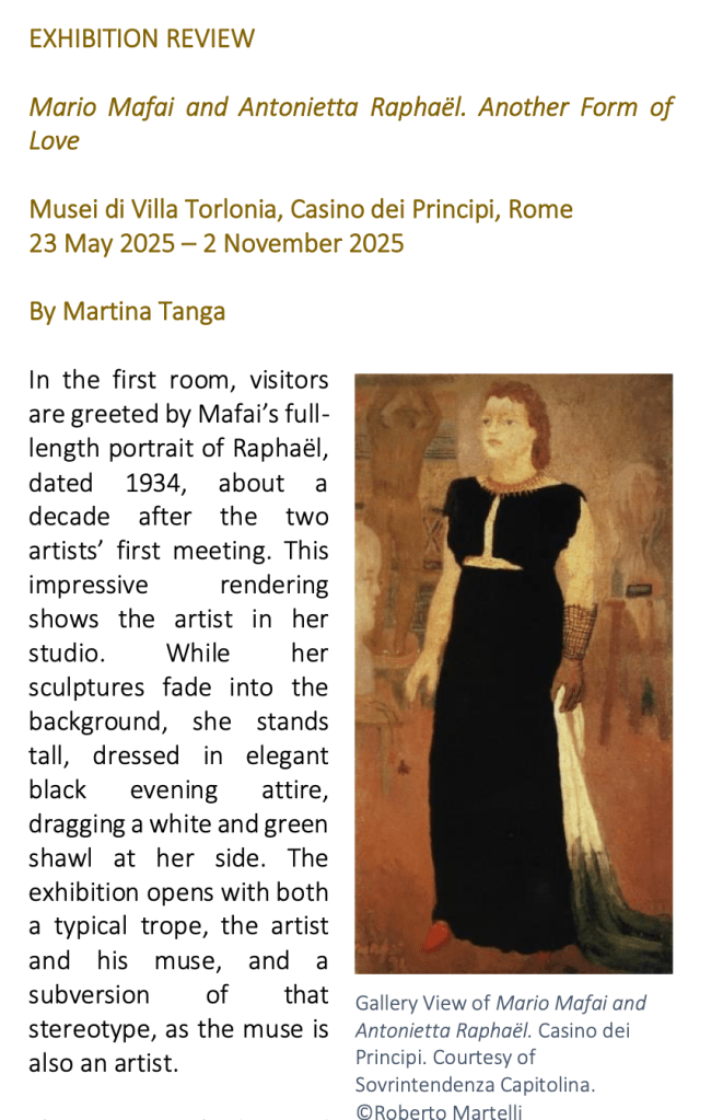 Review was published in the Italian Art Society Newsletter, Fall 2025
